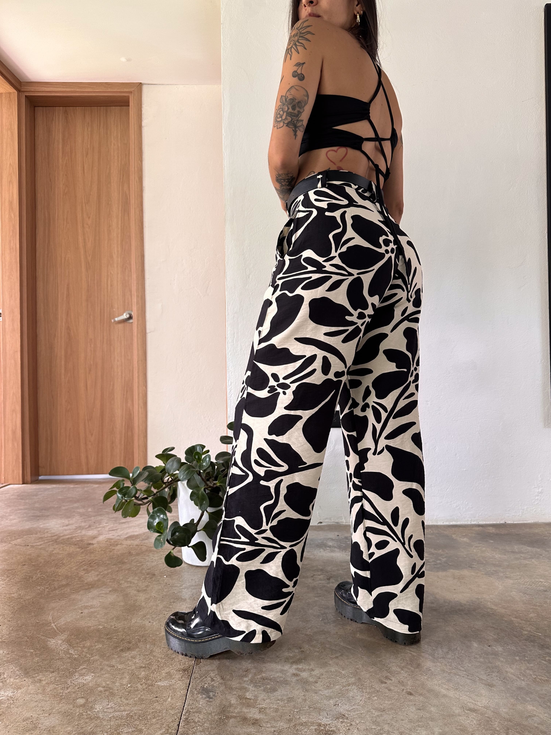 $113.000Pant tiro alto, con print floral, elaborado en rayon y poliester, tiene bolsillos laterales, tiene la bota ancha, es una prenda básica fácil de combinar, su fit es amplio y super cómodo. La tela tiene poca elasticidad